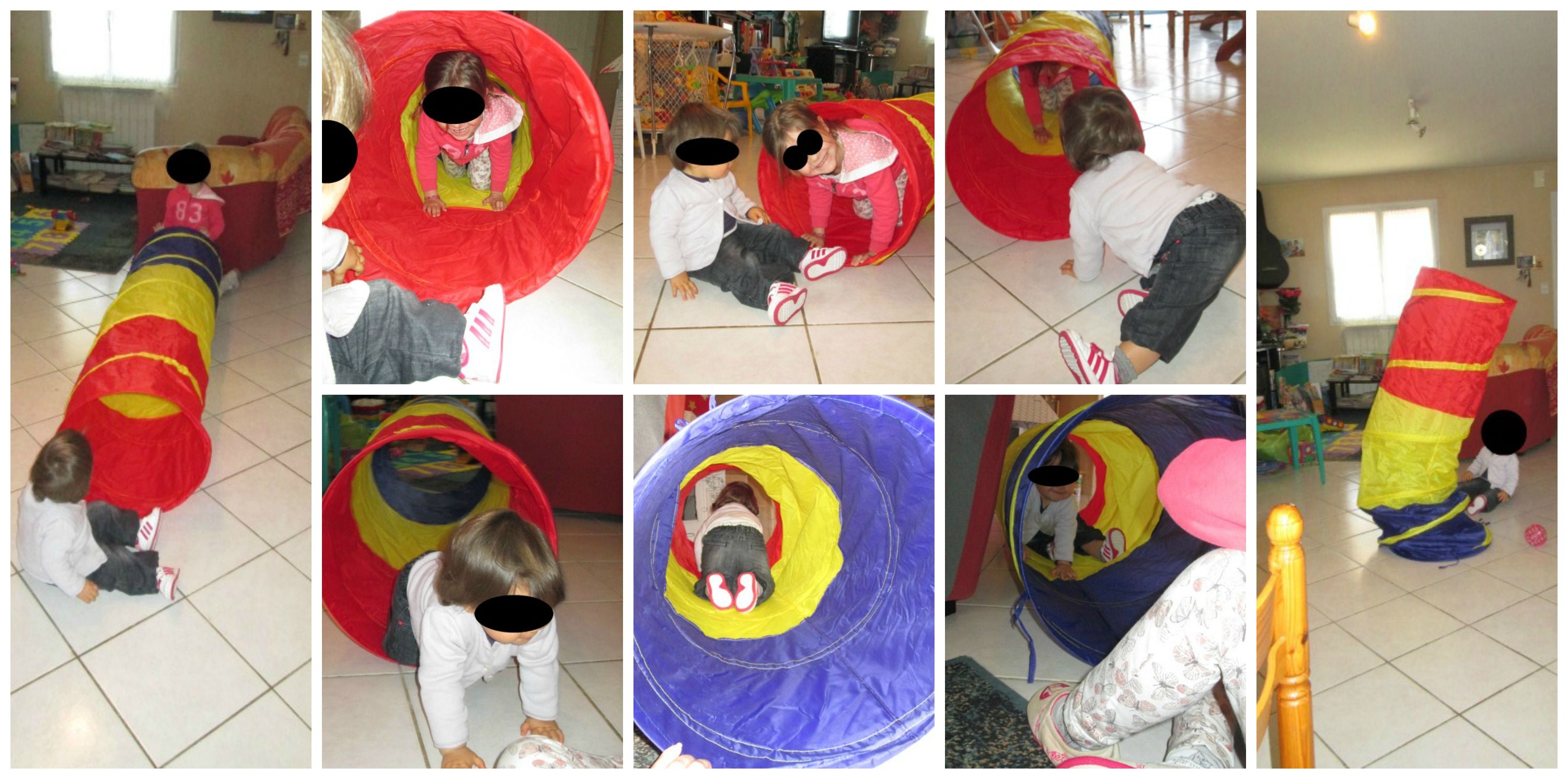 enfant enfants moi chez sourire bonne monde tunnel motricité coucou caché avancer oser reculer lancer bale avancer