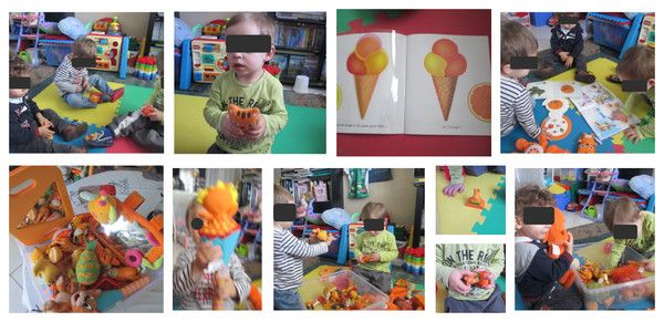 Aujourd'hui je pose sur le tapis, les livres ouverts aux pages consacrées à la couleur "orange" et les enfants regardent ceux qu'ils veulent !