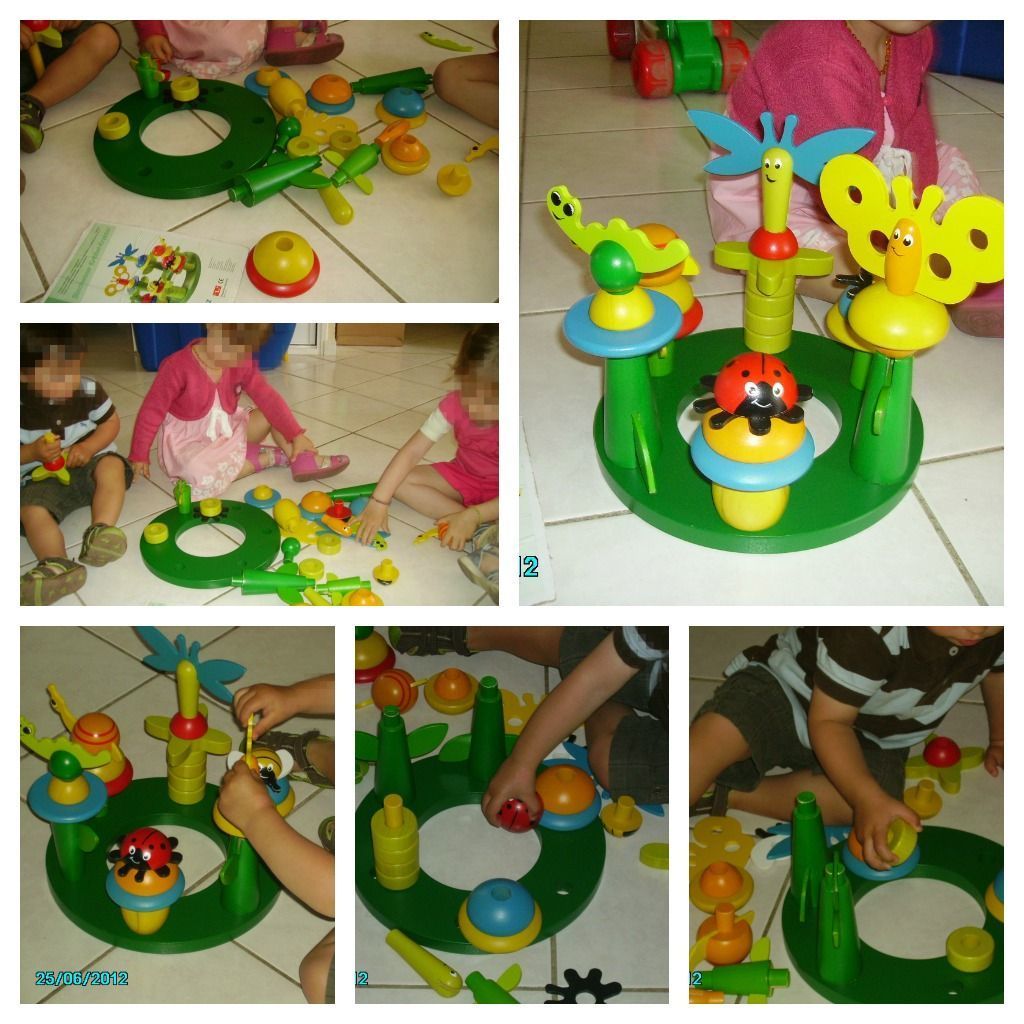 RechercherJe leur propose un nouveau jeu de la malle du RAM. Il s'agit d'un jeu de construction en bois sur le thème du printemps avec des végétaux, des insectes dont une coccinelle et des mollusques. Ce jeu favorise la motricité manuelle, la coordination des mouvements, la perception spatiale et la planification des actions. Bref, il n'est pas si simple qu'il en a l'air pour les petits !! Les éléments ne sont pas tous stables !!! Il faut de la patience, de l'adresse et de la persévérence.