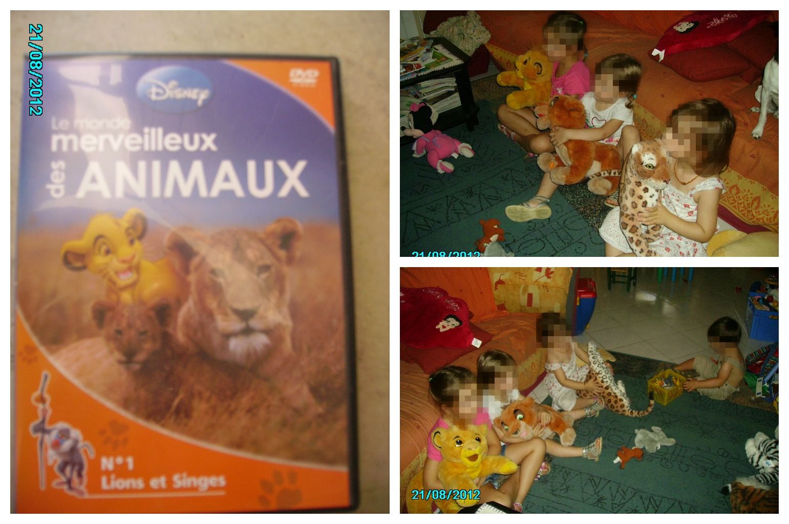Nous visionnons le DVD "Le monde merveilleux des animaux" N°1 lions et singes de chez Disney.