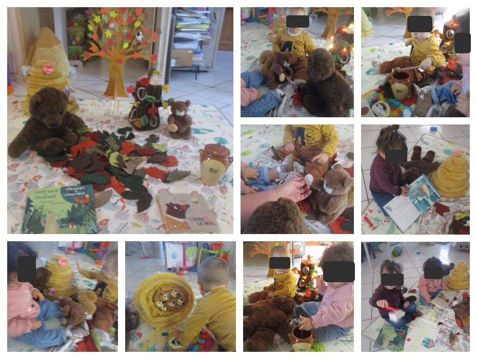 Un très joli atelier !! ils sont restés quasiment toute la matinée sur ce tapis !! à lire, manipuler, jouer, imaginer, imiter, etc