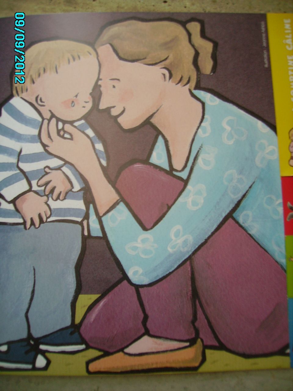 (tracer des larmes avec son doigt sur la joue de l'enfant)