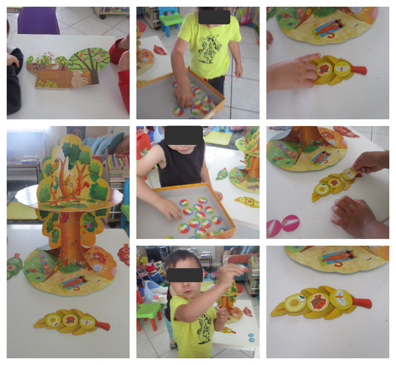 Comme le tiroir contenant les figurines est à côté, les enfants associent spontanément une figurine à une image recomposée !! c'est top !